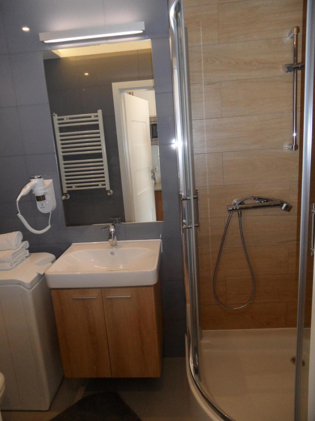 Apartament typu studio z tarasem. The air-conditioned apartment features 1 bedroom and 1 bathroom with a shower and a hairdryer. Meals can be prepared in the well-fitted kitchenette, which comes with a stovetop, a refrigerator, a dishwasher and kitchenware. Featuring a terrace, this apartment also provides a washing machine, soundproof walls and a flat-screen TV. The unit offers 1 bed. Apartament - 2 osobowy. Powierzchnia pokoju ok.: 20 mkw. ;